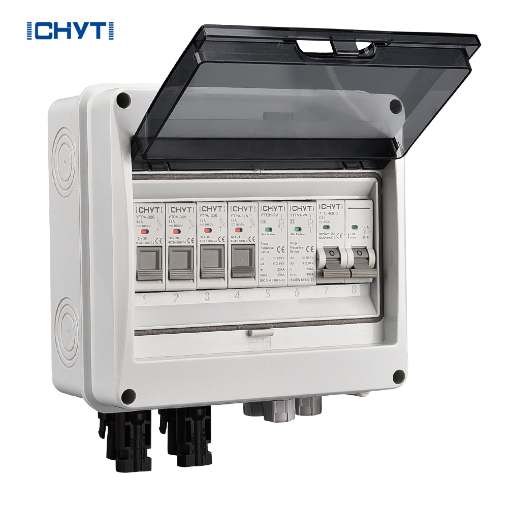 Thairis sin, tá cosantóir borrtha DC atá deartha go speisialta sa bhosca Combiner. Soláthraíonn sé seo meicníocht chosanta láidir i gcoinne tosca seachtracha cosúil le stailceanna tintrí agus luaineachtaí voltais, ag cinntiú go bhfeidhmíonn an córas fótavoltach go cobhsaí gan briseadh.